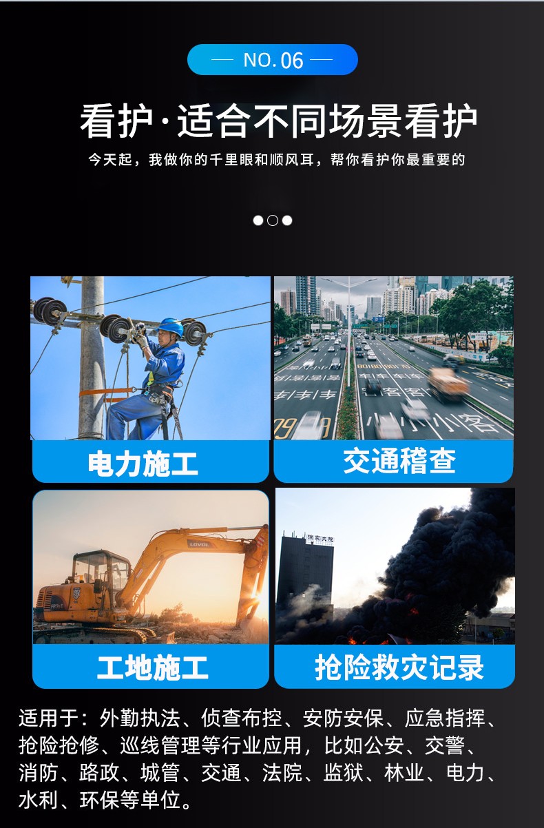 適用于外勤執(zhí)法、偵查布控、安防安保、應(yīng)急指揮、搶險(xiǎn)搶修、巡線管理等行業(yè)應(yīng)用,比如公安、交警、消防、路政、城管、交通、法院、監(jiān)獄、林業(yè)、電力、水利、環(huán)保等單位。