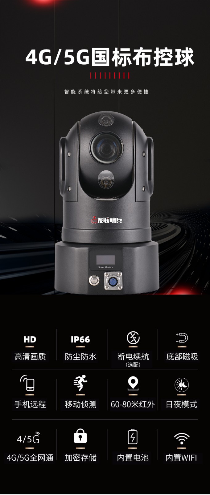 友聯(lián)哨兵4G高清布控球無(wú)線4G布控球